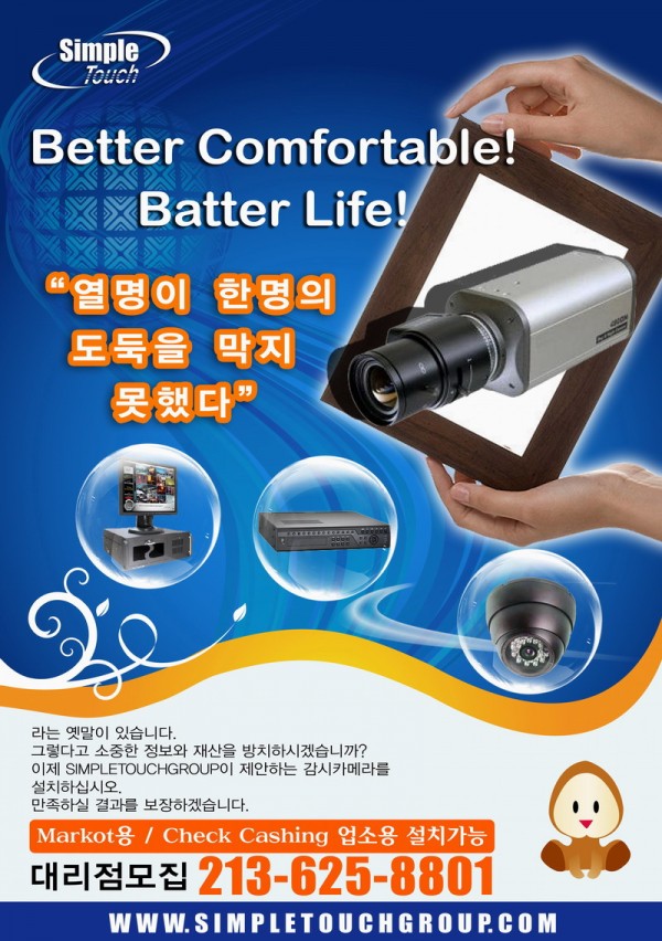 카메라 4대(2대는 밤에도 가능)에 감시장비 1대구요.