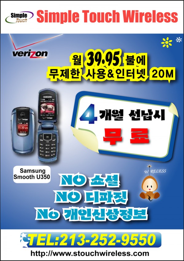 무제한 쓸수있는 Prepaid Phone 을 Free로 받아갈수 있읍니다 (3개월 선납시)