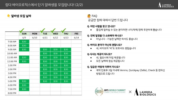 시애틀 | [바이오테크 스타트업] $1K+ 마케팅 행사/아르바이트 기회 (6/11-13)
