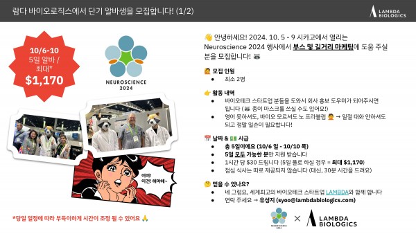 시카고 | [급구] [바이오테크 스타트업] $1,170 마케팅 행사/아르바이트 기회 (10/6-10) 페이지 정보 작성자 유성지 작성일24-10-02 01:30 댓글0건 조회1,491회 관련링크 목록 본문 댓글목록 등록된 댓글이 없습니다. 로그인을 해야만 댓글을 작성할 수 있습니다. 목록