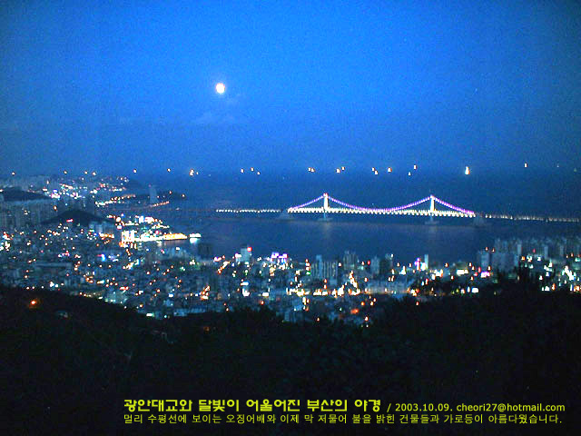 광안대교와 달빛이 어울어진 부산의 야경 페이지 정보 작성자 철이 작성일06-02-03 11:29 댓글0건 조회4,819회 관련링크 수정 삭제 목록 본문 광안대교와 달빛이 어울어진 부산의 야경 댓글목록 등록된 댓글이 없습니다. 수정 삭제 목록