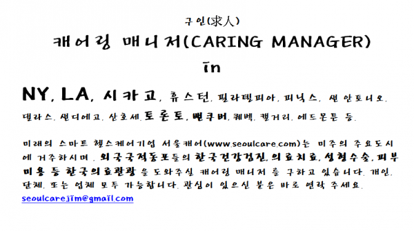 서울캐어 미주지역 캐어링 매니저 구함니다