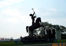 뉴엔 본부에 있는 거대 공룡을 죽이는 말탄 기사