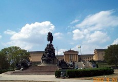 필라델피아 미술관과 우뚝 솟은 거대한 동상