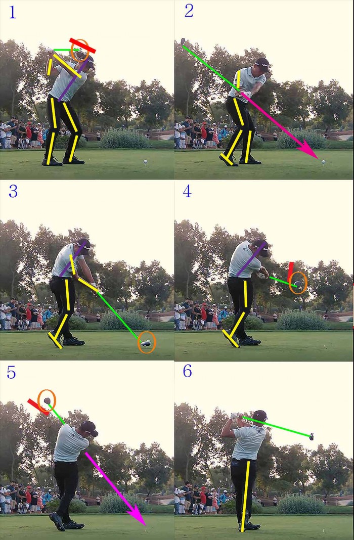 (이 지점까지도 아마추어들 중에 공의 위치를 바라보는 분들이 있는데, 그렇게 되면 오른쪽 어깨가 빠져 나가지 못해서