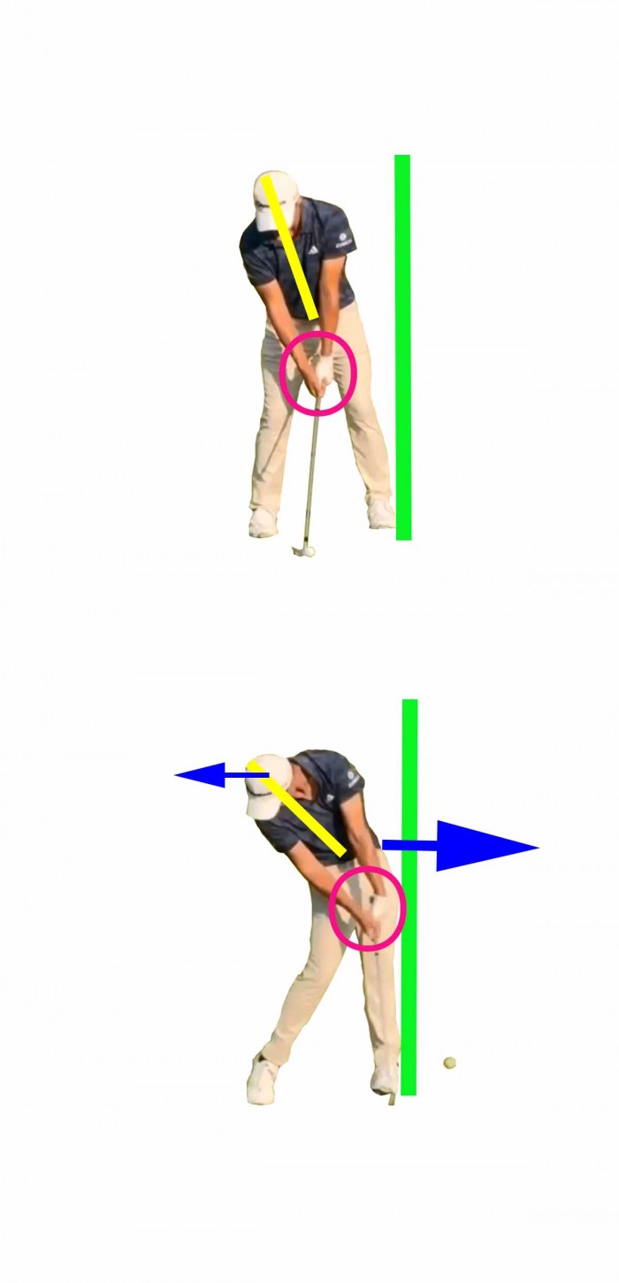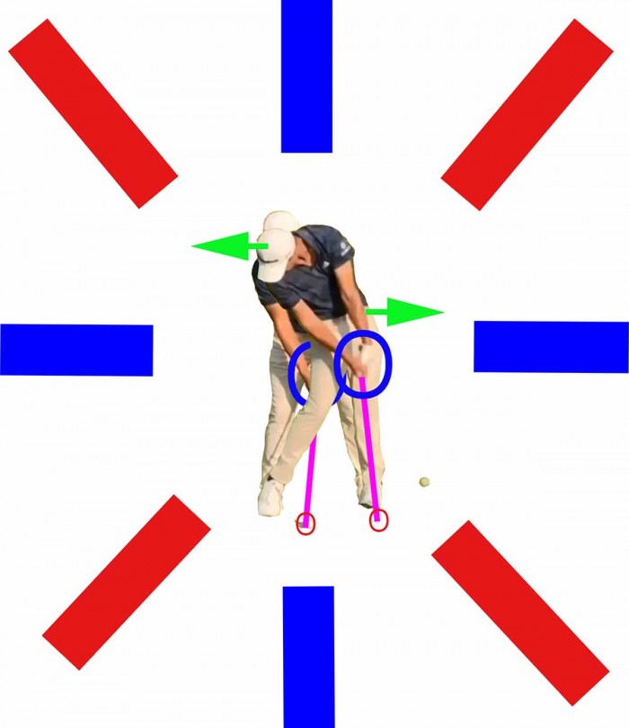 2.왼쪽 골반은 어드레스때 보다 타겟쪽으로 많이 다가섰지만