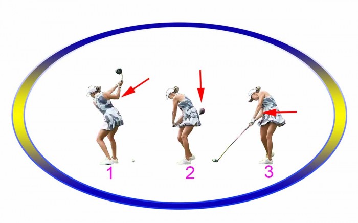 (많은 아마추어들이 힘팩트 순간 오른팔을 쭉 뻗어야 된다고 생각 하는 분들이 많은데