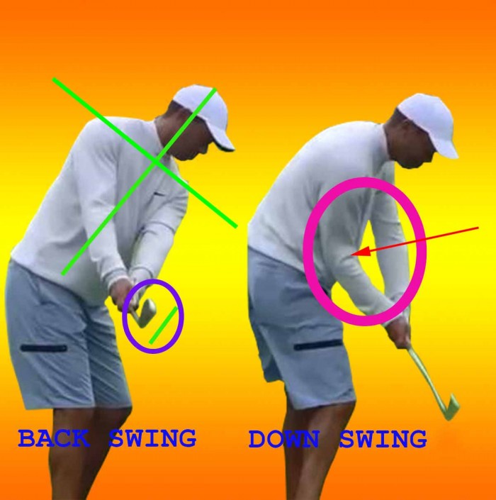 -타이거 우즈는 상체 각도와 클럽헤드의 LEADING EDGE 의 각도를 똑같이 유지하고 있습니다.