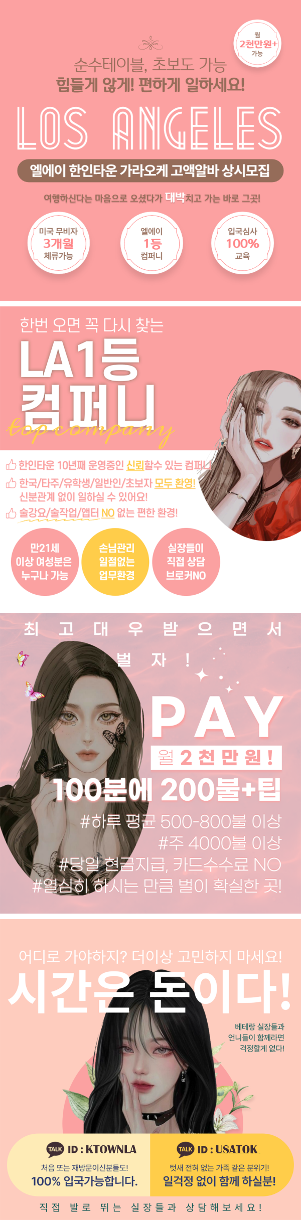 뉴욕뉴저지 | 엘에이 노래방 도우미 상시모집 월2만이상 가