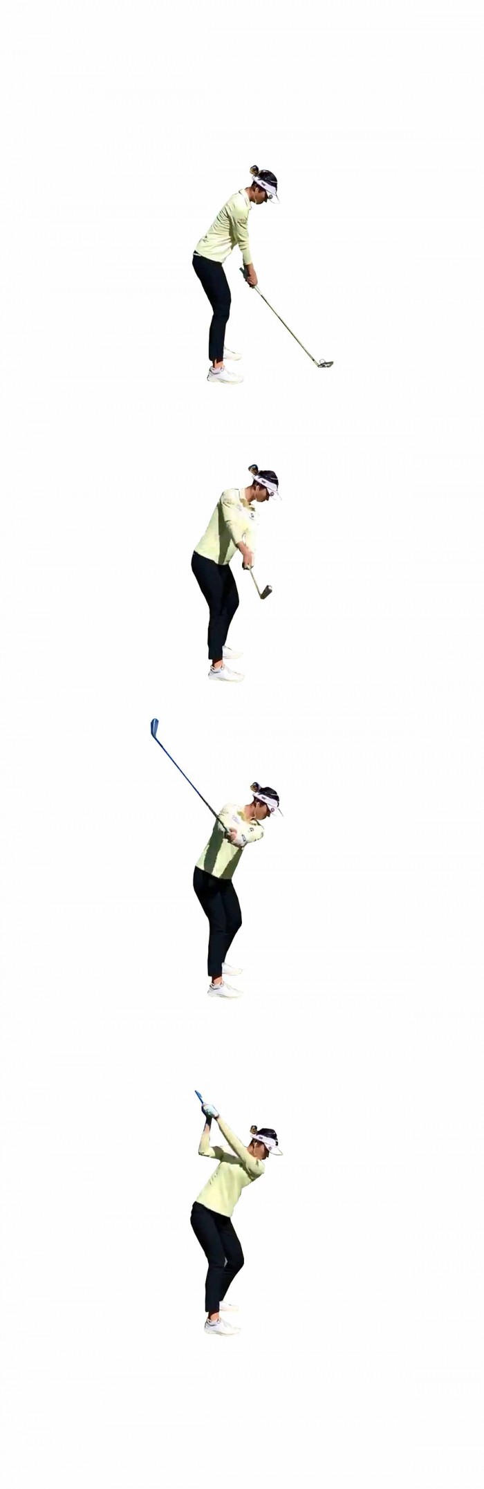 이처럼 LYDIA KO 의 셋업과 백스윙을 보면 한마디로 빈틈이 없이 꽉 찬 느낌입니다.