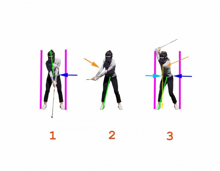 (아마추어의 경우 무게를 보내야 된다는 생각에 SWAY 하는 경우가 많습니다.)