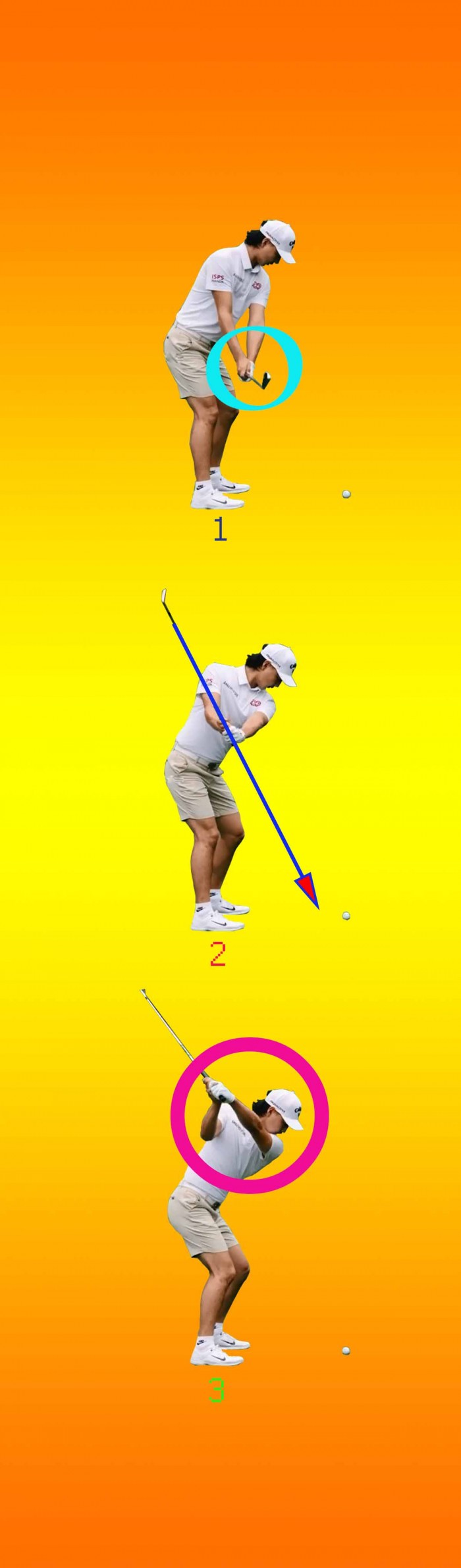 하지만 다운스윙때 하체가 먼저 움직이면서 어깨에 힘을 뺄수 있다면 클럽전체가 DROP 되면서, 자연스럽게