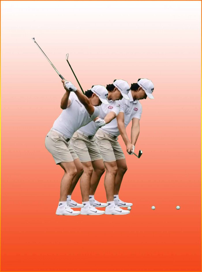어떤 모습으로, 어느 방향으로 움직이는지 아래 사진을 보면 그의 백스윙에 대한 생각을