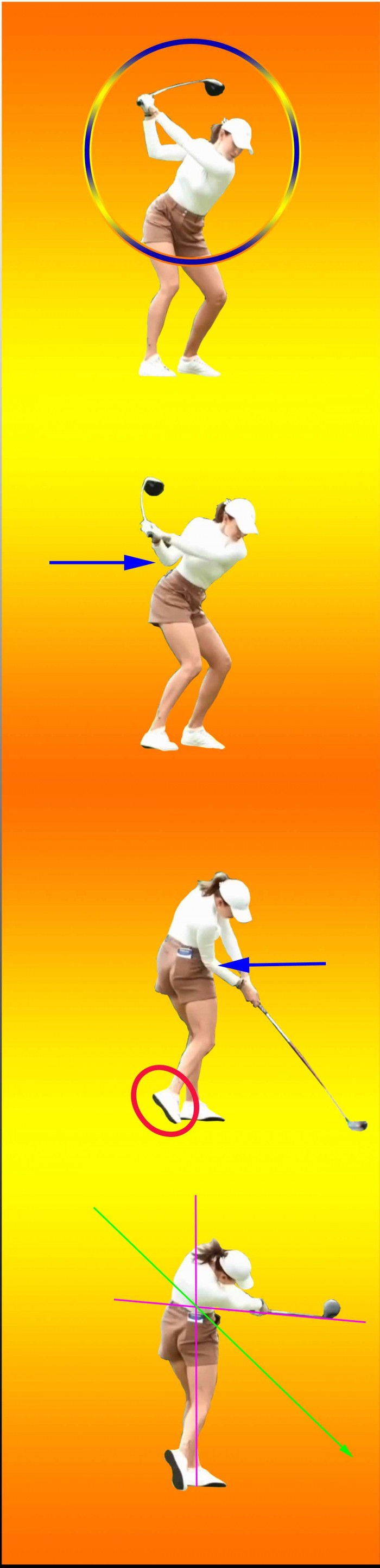 아마도 그녀의 스윙 스피드 비법 중에 가장 핵심적인 요소는 백스윙 탑에서 다운스윙 전환 될때