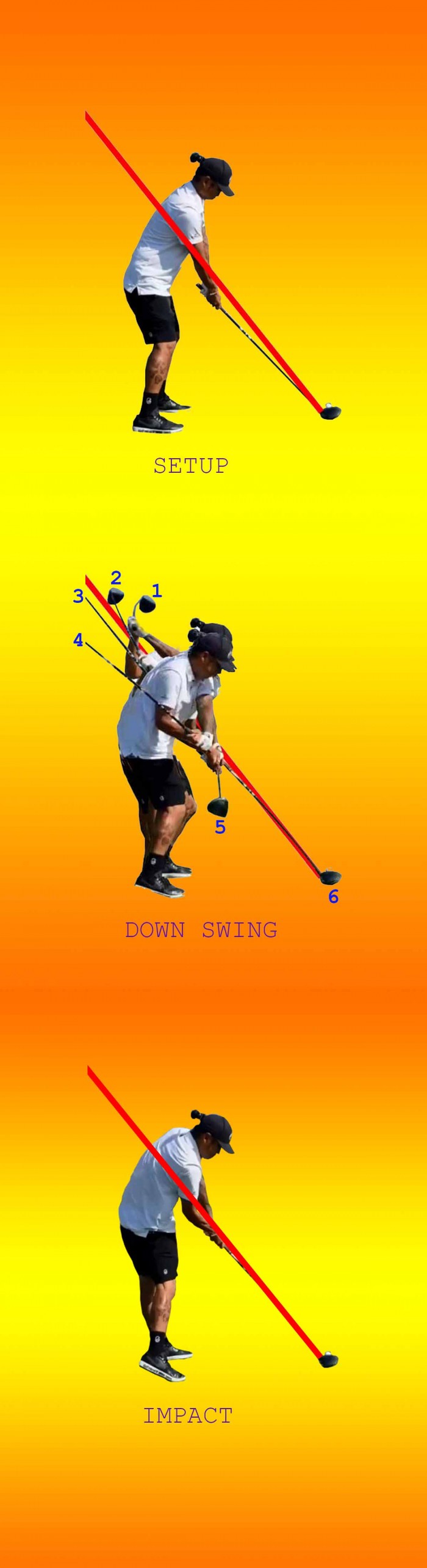 -5번 처럼 SHAFT 가 타겟 라인과 평행한 선을 이룬 다음, 임팩트 순간