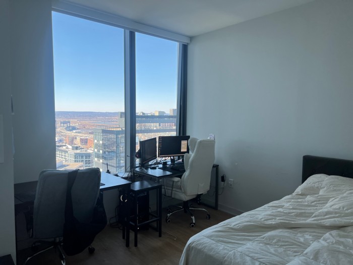 깔끔하게 관리된 집이고 새집이라고 봐도 무방합니다. 필요한 생필품 및 주방용품은 구비되어있고 원베드 전체 서블렛이라 굉장히 큰 방입니다. 방학기간동안 한국에 가야해서 서블렛 놓습니다. 집안에 세탁기와 건조기, 식기세척기까지 보유하고 있고 어메니티로 수영장, 헬스장, 라운지, 스터디룸등 있습니다! 24시간 도어맨과 10시이후로는 카드가 없으면 출입이 안돼 보안이 굉장히 철저한 아파트입니다.
