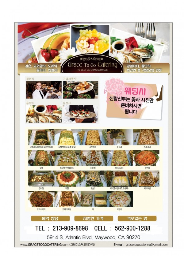 **웹사이트(Web: www.Gracetogocatering.com)에서 온라인 상으로 할수 있습니다