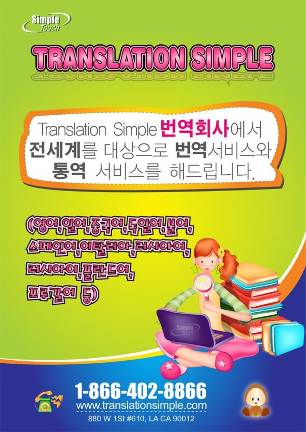 Translation Simple 번역은 전세계를 대상으로 하는 국제화번역 회사입니다. 1장도 해드리니 부담없이 문의하시기 바랍니다.