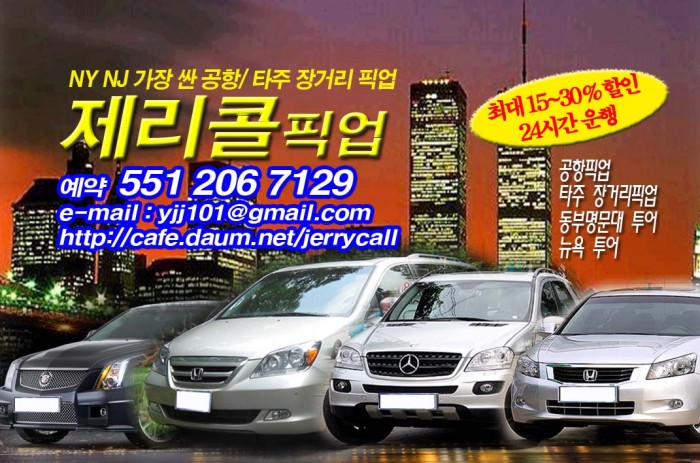 제리콜예약 551-206-7129 24시간운행/ 밴서비스